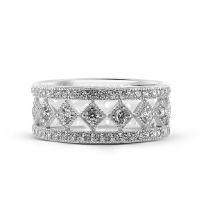 L’anneau de cette bague se sépare en plusieurs branches fines . L’une d’elles passe au premier plan en s’élargissant et insuffle du dynamisme au bijou avec son dessin en zigzag.
