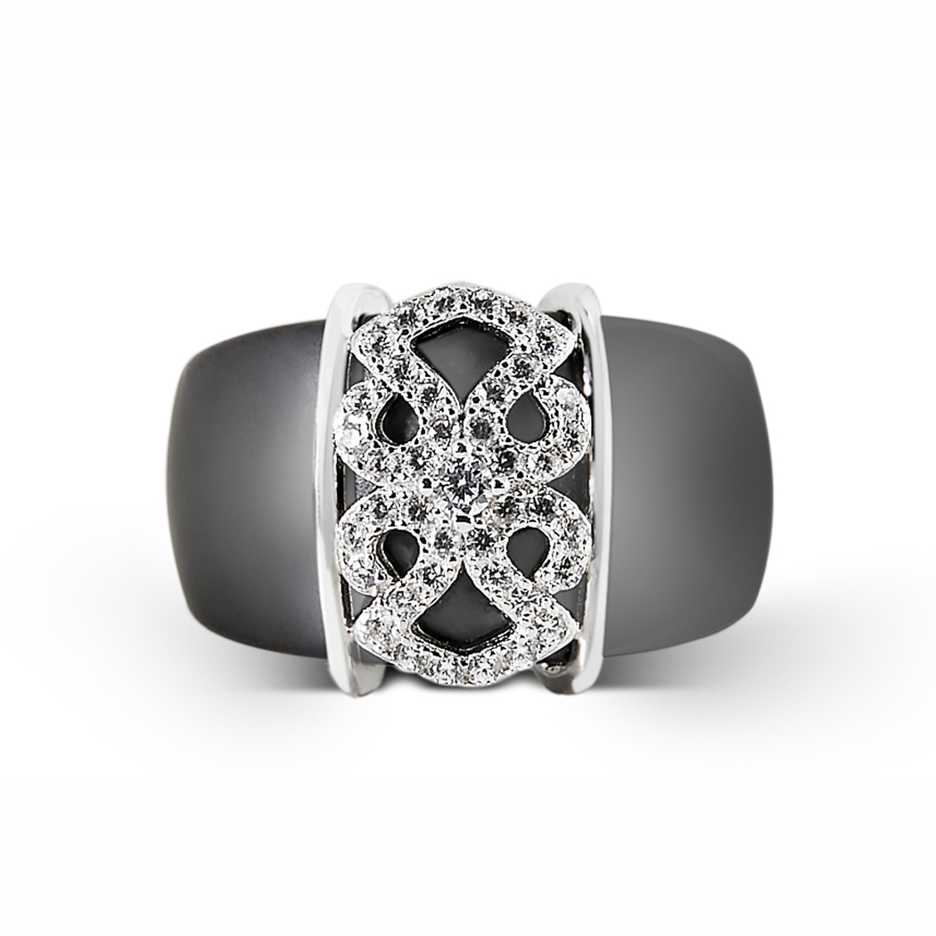 Optez pour l’originalité avec cette bague pour femme en céramique noire et oxydes de zirconium au style très tendance.