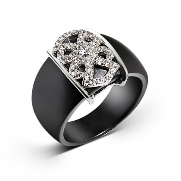 Optez pour l’originalité avec cette bague pour femme en céramique noire et oxydes de zirconium au style très tendance.