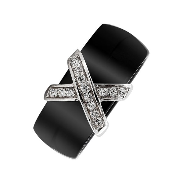 Optez pour l’originalité avec cette bague pour femme en céramique noire et oxydes de zirconium au style très tendance .