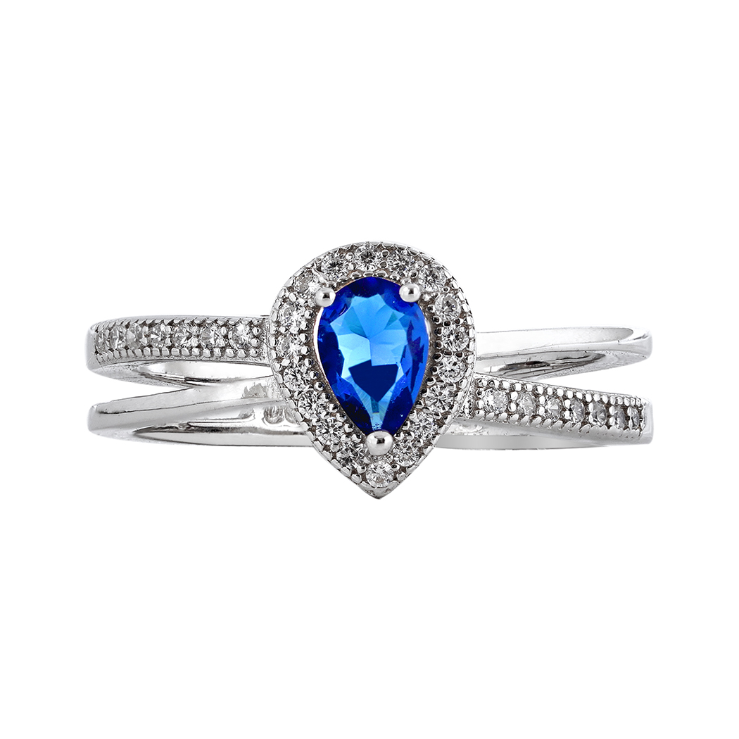 Un design original pour cette bague en argent sertie d’oxydes blancs qui viennent rehausser l’éclat de la pierre centrale : un oxyde bleu à la couleur intense. Une bague à porter de jour comme de nuit pour sublimer tous vos gestes.