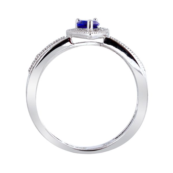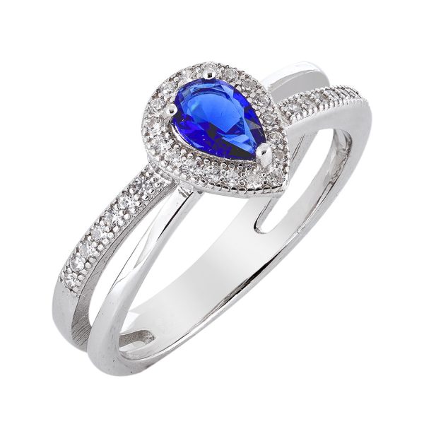 Un design original pour cette bague en argent sertie d’oxydes blancs qui viennent rehausser l’éclat de la pierre centrale : un oxyde bleu à la couleur intense. Une bague à porter de jour comme de nuit pour sublimer tous vos gestes.