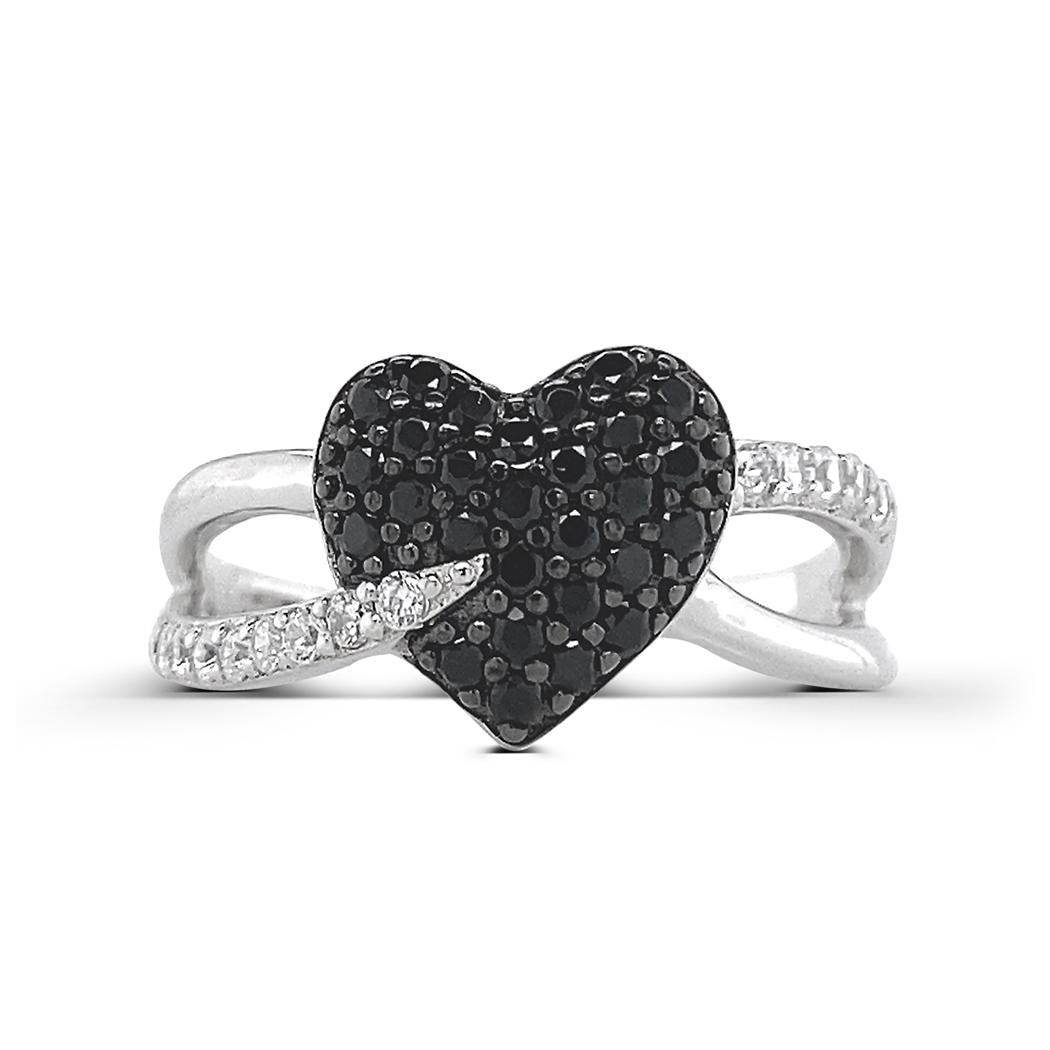 Jouez la carte de la féminité et du romantisme et optez pour cette bague originale et romantique. L’anneau est surmonté d’un cœur serti d’oxydes de zirconium noir