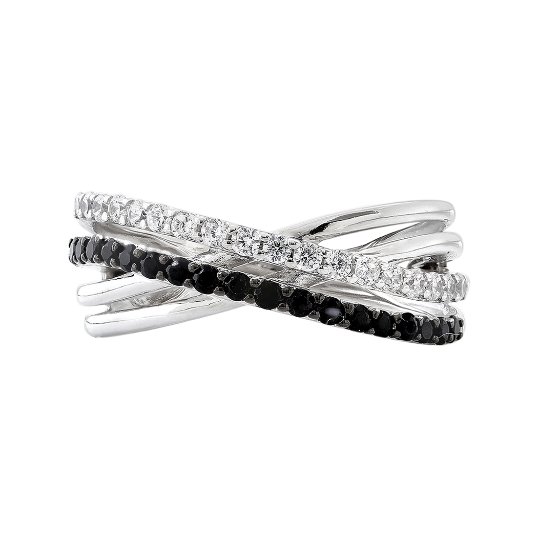 Jouez la carte des lignes entrelacées pour sublimer tous vos gestes et optez pour cette bague en argent et oxydes au design intemporel et toujours tendance.