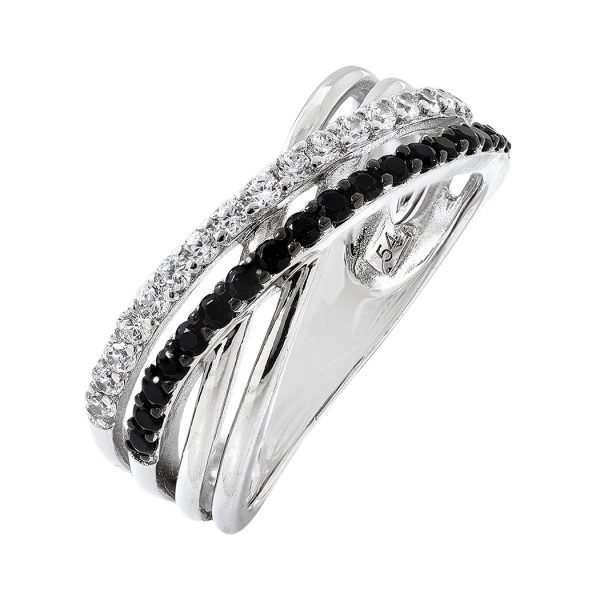 Jouez la carte des lignes entrelacées pour sublimer tous vos gestes et optez pour cette bague en argent et oxydes au design intemporel et toujours tendance.