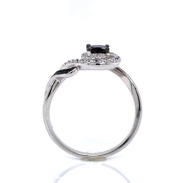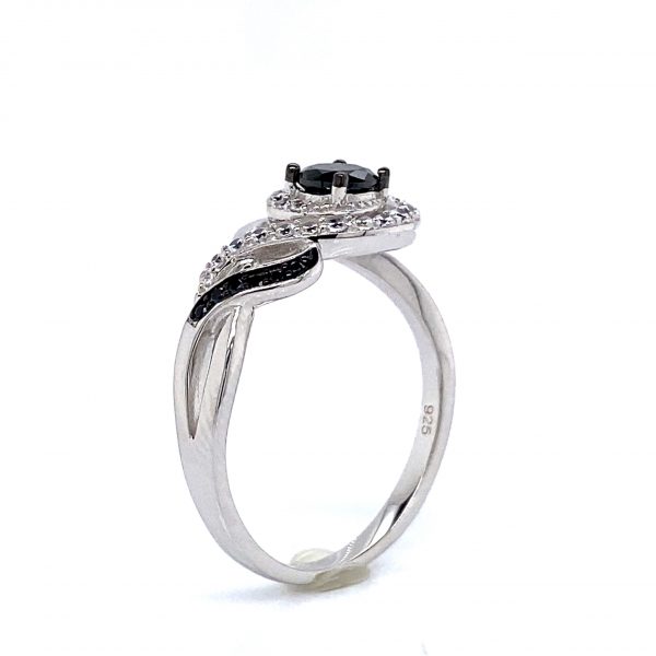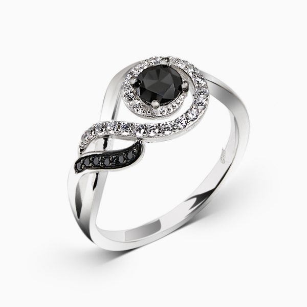 Un design original pour cette bague en argent sertie d’oxydes blancs qui viennent rehausser l’éclat de la pierre centrale : un oxyde noir à la couleur intense. Une bague à porter de jour comme de nuit pour sublimer tous vos gestes.