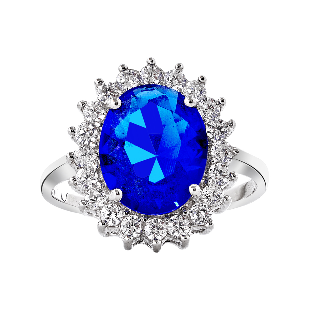 Cette somptueuse bague est empreinte d’un esprit romantique intemporel. Des oxydes de zirconium blancs mettent en valeur la pierre centrale bleue. Affichant une merveilleuse élégance, elle fera un cadeau apprécié