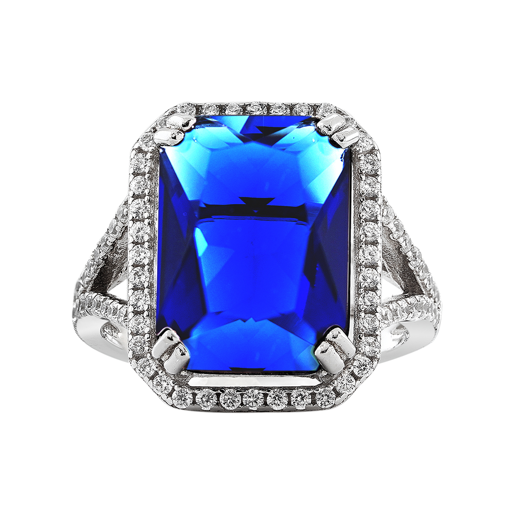C’est à son élégance absolue que cette bague doit son caractère si particulier. Elle se compose d’une pierre solitaire en oxyde bleu entourée de cristaux de zirconium blancs créant un magnifique look scintillant.