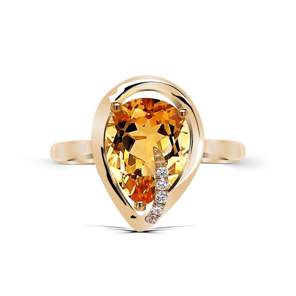 Bague Or 375 millièmes Citrine et Oxyde de Zirconium