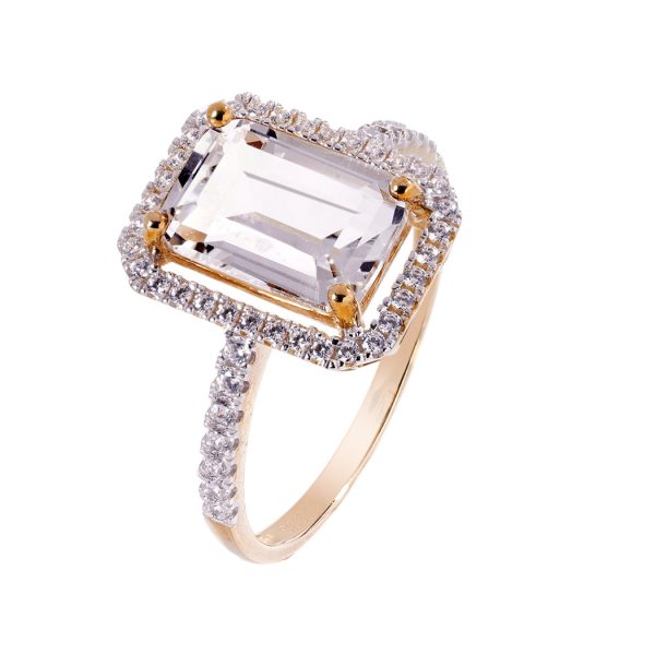C’est à son élégance absolue que cette bague, doit son caractère si particulier. Elle se compose d’un magnifique cristal entourée d’oxydes de zirconium blancs créant un magnifique look scintillant.