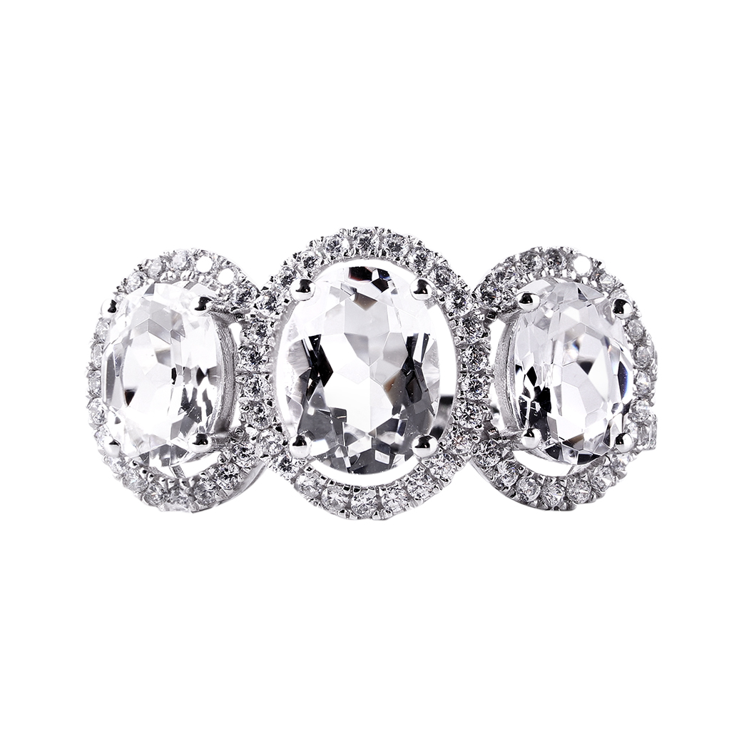 Cette somptueuse bague est empreinte d’un esprit romantique intemporel Elle est rehaussée d’ une trilogie de cristal, entourée d’oxydes de zirconium. Affichant une merveilleuse élégance, elle fera un cadeau apprécié