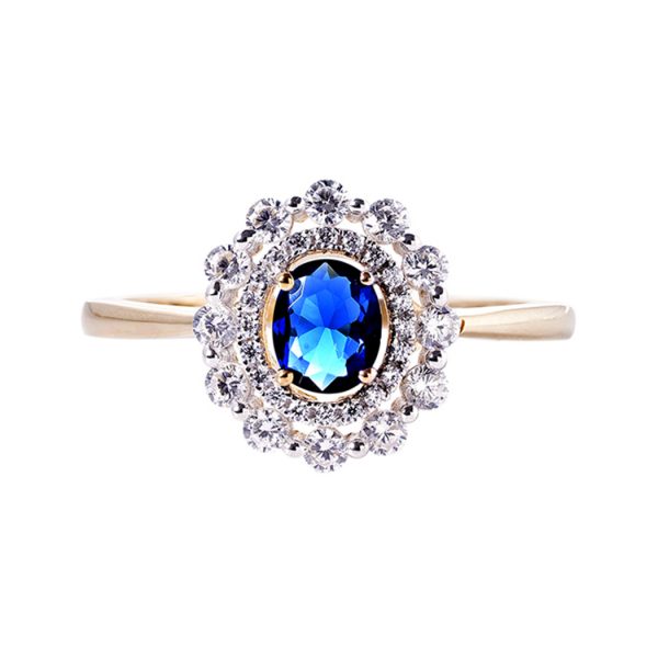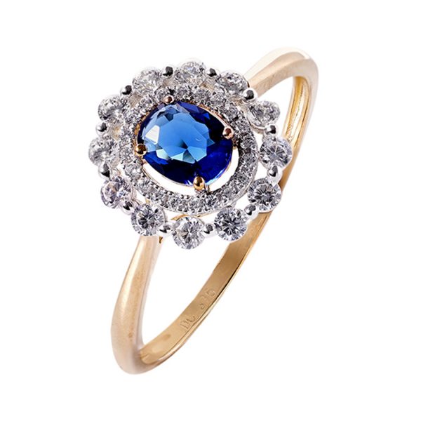 De style classique romantique, cette bague en or jaune ravira les amatrices de bijoux anciens. Avec son coeur en oxyde bleu et sa double corolle en oxydes de zirconium, elle ajoutera une note d’éclat à votre doigt.