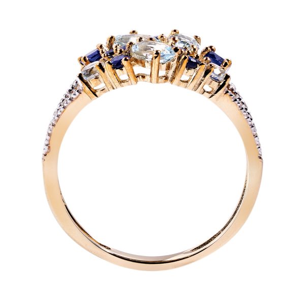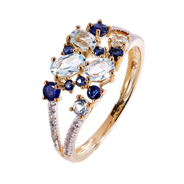 Optez pour l’originalité de cette bague. En or jaune elle est surmontée d’une constellation de saphirs et de topaze !i Elle deviendra rapidement un accessoire favori de votre boite à bijoux.