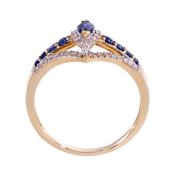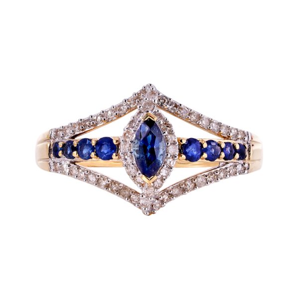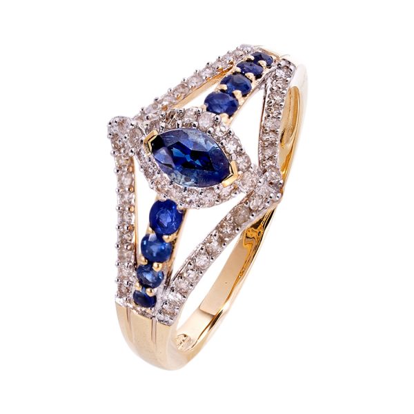 Audacieuse par son design et luxueuse grâce à ses saphirs et ses diamants, cette bague incarne la grâce des bijoux précieux et féminins.