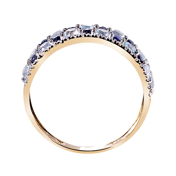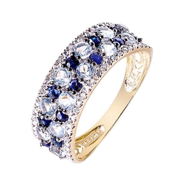 Apportez une touche glam’ rock à tous vos looks et optez pour cette bague tendance en or jaune 750 millièmes sertie de saphir, topaze et diamants..Craquez pour son volume et la brillance des pierres. C’est la bague idéale pour se démarquer avec style. Ré