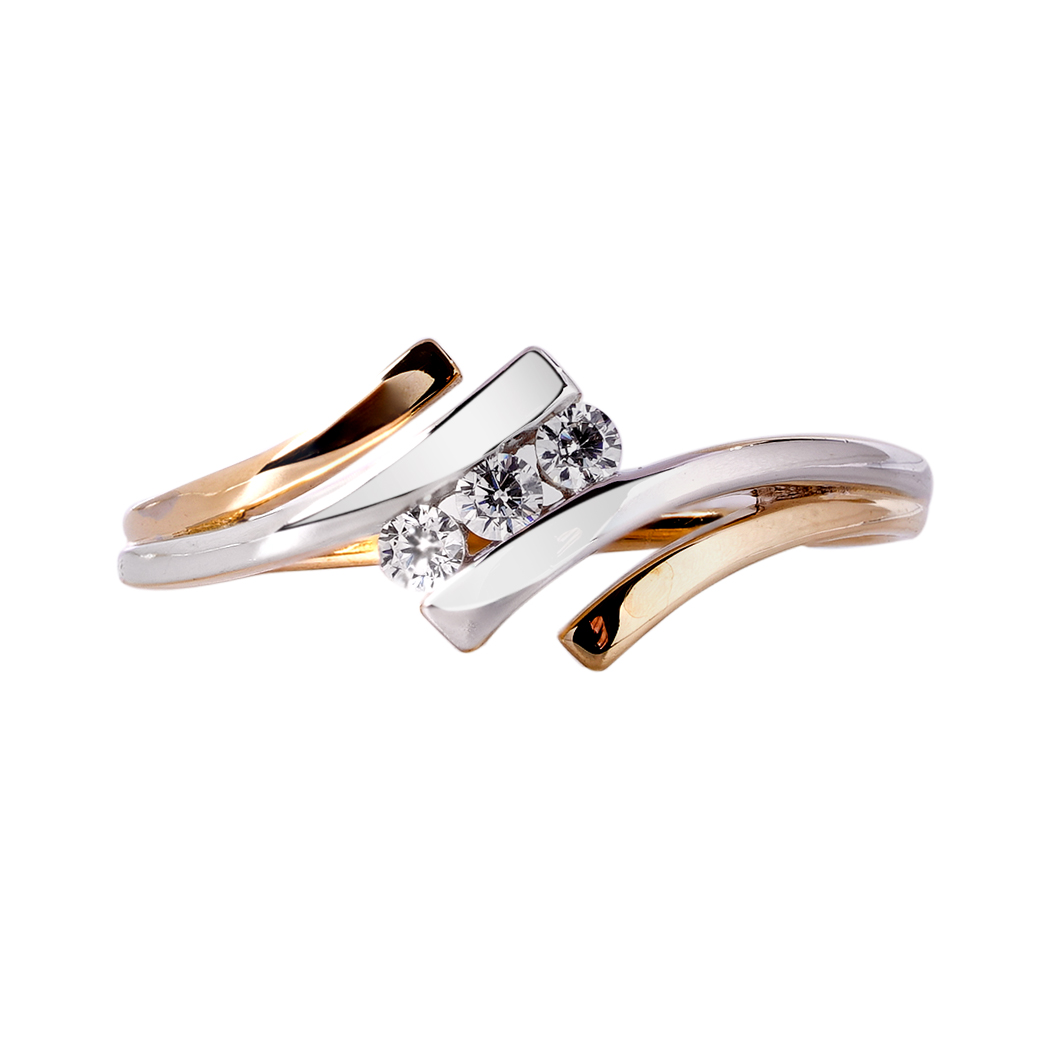 Bague Or Bicolore 375 millièmes et Oxyde de Zirconium