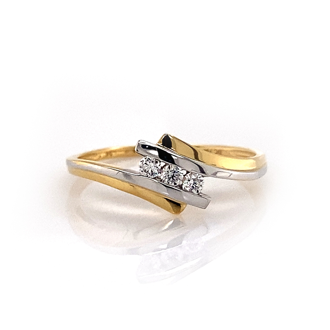 Bague Or Bicolore 375 millièmes et Oxyde de Zirconium