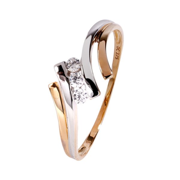 Bague Or Bicolore 375 millièmes et Oxyde de Zirconium