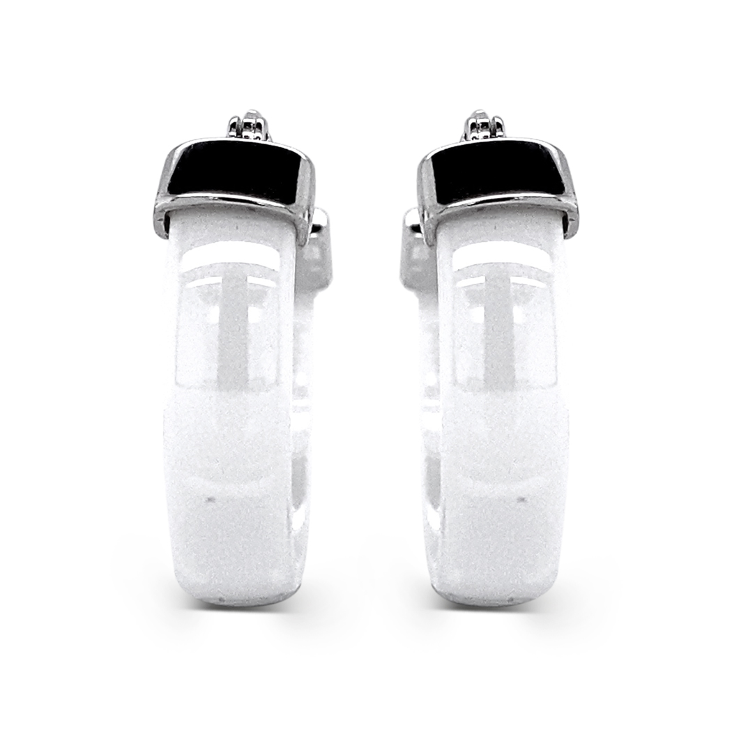 Craquez pour ces intemporelles créoles en argent et céramique blanche. Idéales pour illuminer votre visage et sublimer un look élégant !