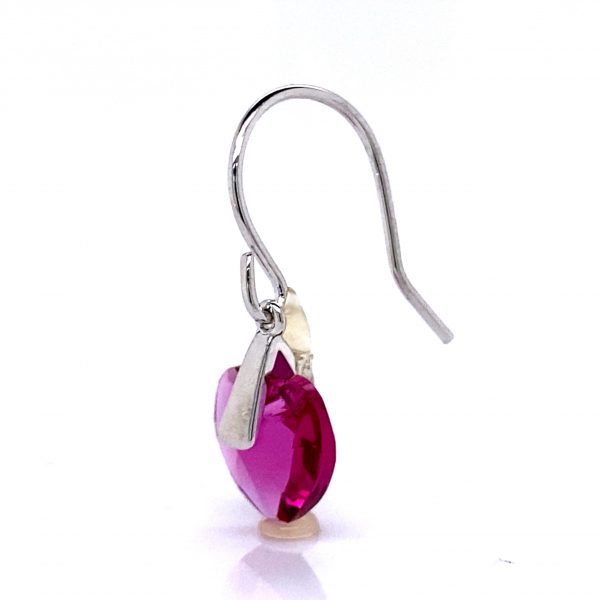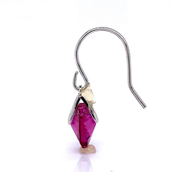 Ces boucles d’oreilles pendantes, associant l’argent rhodié à un cristal de Swarovski d’un rose intense, séduiront celles qui aiment se démarquer et afficher leur humeur romantique.