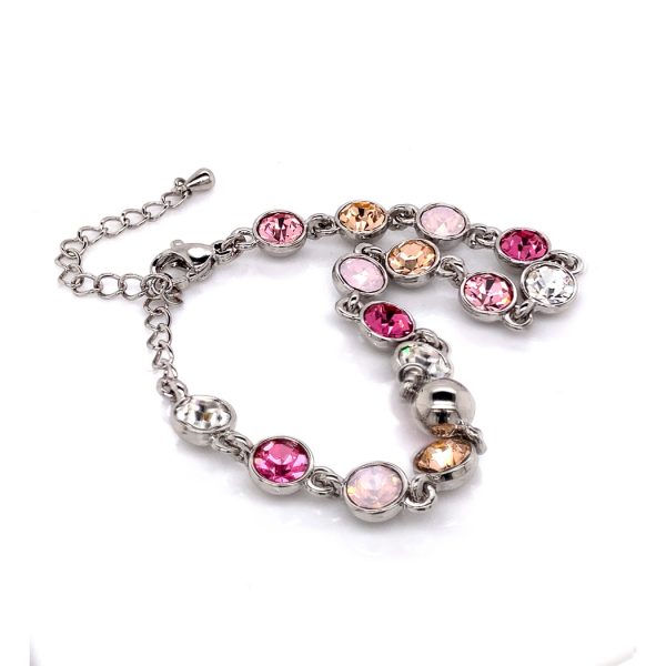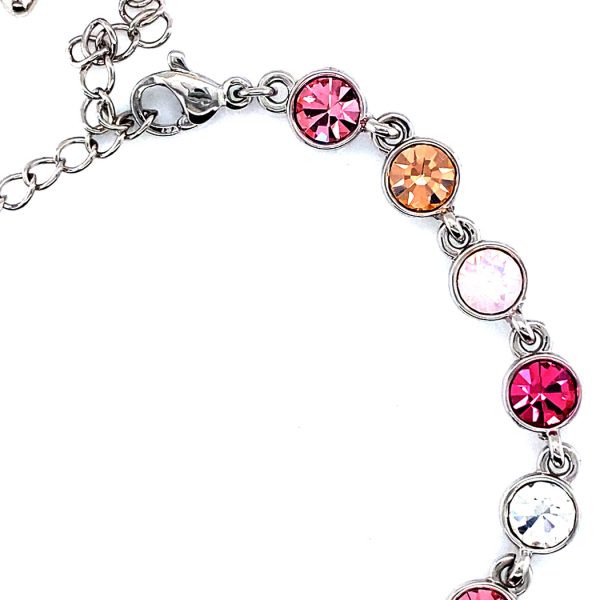 Ce bracelet “tutti frutti” en acier serti de cristaux de Swarovski de différentes couleurs donnera de l’éclat et du dynamisme à votre look .