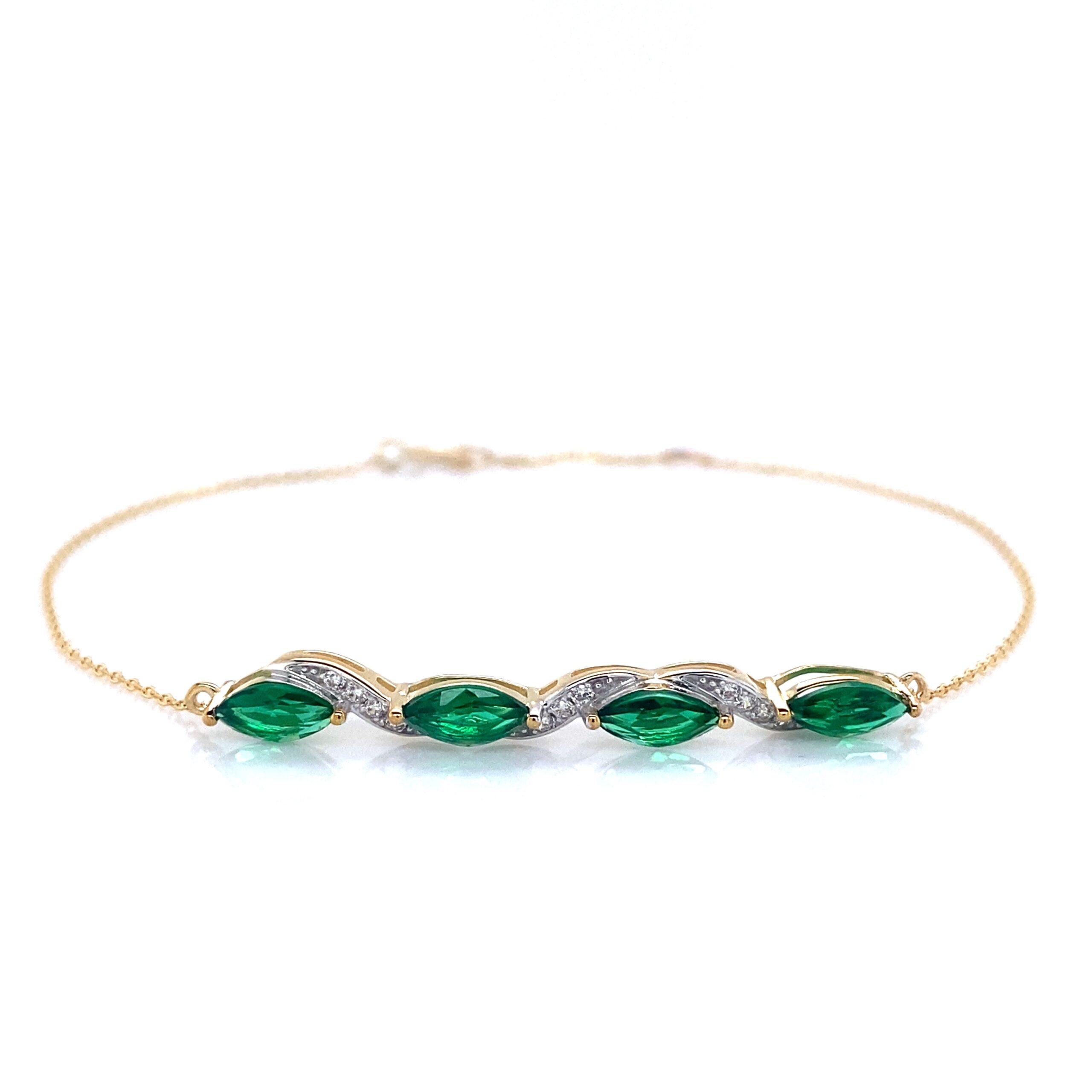 Laissez-vous séduire par ce charmant bracelet pour femme en or jaune composé d’une fine chaîne ornée de 4 oxydes verts etincellants. Ce bijou original s’adapte à tous les poignets grâce à son anneau de réglage.