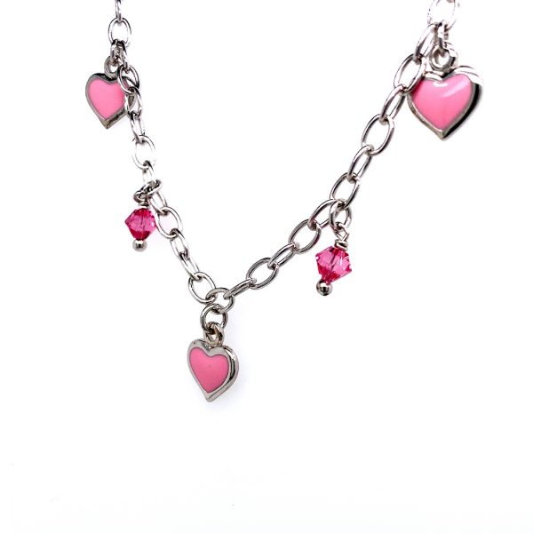 Succombez au charme de ce collier en argent pour enfant orné de pampilles cœur en laque rose ! Succès garanti auprès des petites filles !